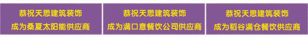 天思裝飾為您提供方便的一站式服務(wù),不僅能夠提供設(shè)計(jì)與施工服務(wù),還為您提供建材和家具。我們與眾多建材廠(chǎng)商、家具廠(chǎng)商有著密切合作關(guān)系,品類(lèi)廣泛,物美價(jià)廉,滿(mǎn)足您的需求。