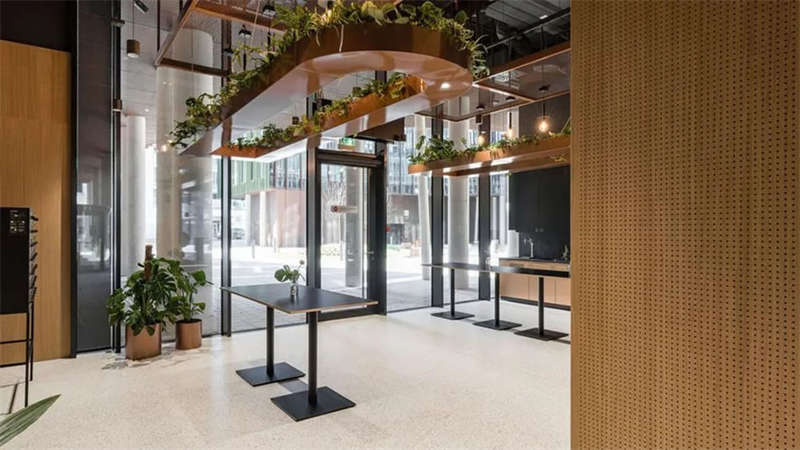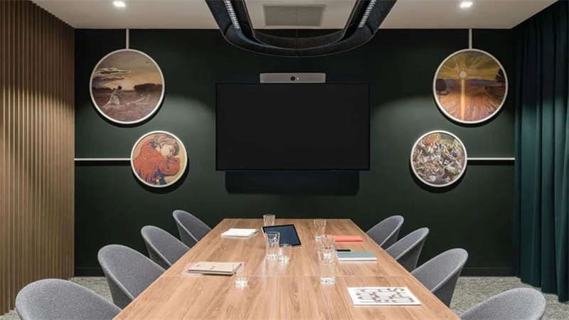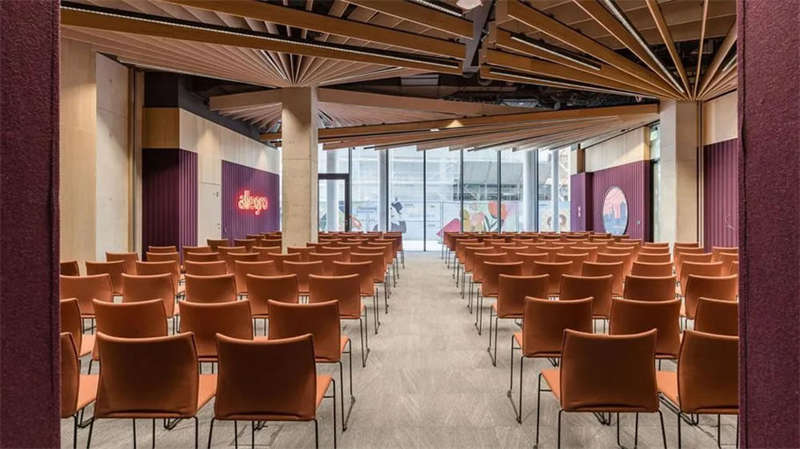 辦公室選擇了電動可調(diào)的升降辦公桌,以滿足員工個性化的需求。為了改善工作區(qū)域的聲學(xué)效果,在工作站之間和燈具上安裝了聲學(xué)板,并采用了大量的織物窗簾,從而減少了辦公室內(nèi)的噪音和混響。此外,在會議室配置了頂尖的IT/AV系統(tǒng),從而將辦公室工作與遠程工作緊密連接;安靜的聲學(xué)工作艙則配備了智能照明和高效通風(fēng)系統(tǒng)。