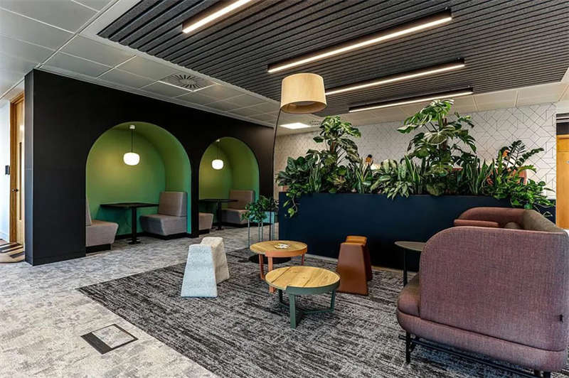 設(shè)計(jì)師的任務(wù)是通過(guò)翻新改造,去創(chuàng)建一個(gè)支持混合辦公模式的工作場(chǎng)所:因?yàn)樵诤笠咔闀r(shí)代,公司成員每周在辦公室工作2-3天,其余時(shí)間居家工作(WFH)或遠(yuǎn)程工作。在客戶提交的簡(jiǎn)報(bào)中強(qiáng)調(diào)了人力資源這一重要述求:新的環(huán)境將有助于留住現(xiàn)有員工,讓他們感覺(jué)無(wú)論居家還是在辦公室都能自在享受工作的樂(lè)趣,同時(shí)還能吸引潛在的優(yōu)秀人才。