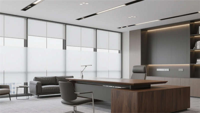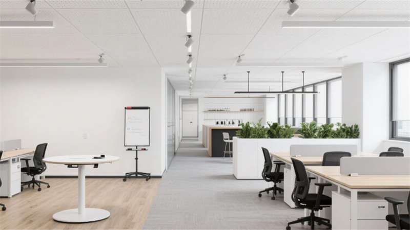 室內(nèi)空間延續(xù)外立面設計語言,企業(yè)大堂通過技術創(chuàng)新實現(xiàn)淺白大理石與木紋墻面的無縫拼接,懸浮式線性燈光系統(tǒng)可隨自然光線智能調(diào)節(jié)色溫。開放式辦公區(qū)配置智慧化模塊組合,可升降桌體與軌道射燈靈活適配多元場景,協(xié)作島集成無線充電與環(huán)境感知功能。高管辦公室采用智能霧化玻璃隔斷,實現(xiàn)隱私與通透的自由切換。科技會議室搭載高清透明顯示系統(tǒng)與多聲道聲學設備,電動百葉簾與補光系統(tǒng)聯(lián)動打造智能會議環(huán)境。