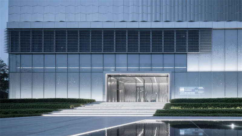 本項目以“未來生態(tài)辦公”為核心理念,在6500㎡空間內(nèi)構建六大智能功能模塊,實現(xiàn)科技美學與可持續(xù)理念的深度融合。建筑外立面采用銀灰色陽極氧化鋁蜂窩板與漸變釉點玻璃幕墻體系,階梯式生態(tài)綠墻與鏡面水景形成碳中和界面,頂部隱形風力發(fā)電模塊與動態(tài)全息標識彰顯企業(yè)科技基因。