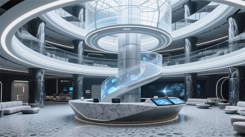 董事套間搭載270°環(huán)幕調(diào)光系統(tǒng),零重力懸浮沙發(fā)與體征監(jiān)測辦公桌塑造人性化高管空間,可變色納米書墻同步展示企業(yè)數(shù)據(jù)與藝術收藏。智控服務中樞集成AI咖啡機械臂與無人機物流站,能耗可視化墻實時反饋建筑運行數(shù)據(jù),形成智慧樓宇管理終端。全息決策會議室以六邊形沉浸艙突破傳統(tǒng)會議形式,4D環(huán)境模擬系統(tǒng)與電磁感應軌道實現(xiàn)場景瞬時切換。