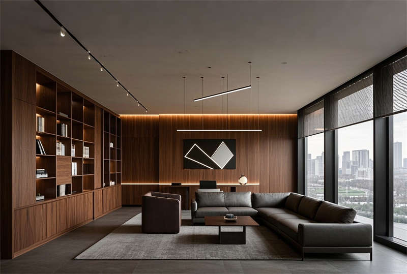 本項(xiàng)目為 3000㎡現(xiàn)代簡(jiǎn)約風(fēng)格辦公室整體設(shè)計(jì),以前沿的智能辦公理念為核心,采用淺灰、原木、金屬三色基調(diào)??臻g規(guī)劃注重功能分區(qū)與動(dòng)線優(yōu)化,包含開放辦公區(qū)、獨(dú)立辦公室、智能會(huì)議室等 10 大功能模塊。設(shè)計(jì)運(yùn)用穿孔鋁板、GRG 造型吊頂?shù)刃滦筒牧?,結(jié)合聲學(xué)處理和智能控制系統(tǒng),打造高效舒適的辦公環(huán)境。照明系統(tǒng)采用 4000K 暖白光搭配線性燈帶,確保工作照度同時(shí)營(yíng)造現(xiàn)代感。環(huán)保方面選用 E0 級(jí)板材和凈味涂料,配備新風(fēng)凈化系統(tǒng)。特色設(shè)計(jì)包括可升降圓桌休息區(qū)、電動(dòng)霧化玻璃會(huì)議室及太空艙電話亭,充分滿足多元化辦公需求。空間內(nèi)設(shè)置 20% 靈活可變區(qū)域,支持未來(lái)團(tuán)隊(duì)擴(kuò)展。所有家具均符合人體工學(xué)標(biāo)準(zhǔn),墻面裝飾融入企業(yè) VI 元素,塑造專業(yè)品牌形象。