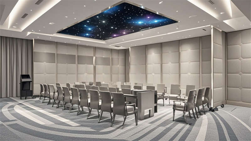 辦公區(qū)采用模塊化布局,配置智能升降桌和人體工學椅,裸頂噴灰工藝結合軌道燈系統(tǒng)實現(xiàn)靈活照明。色彩體系以高級灰為基底,搭配原木色系緩解視覺壓力,局部采用深藍跳色增強空間層次。材質(zhì)運用注重環(huán)保性能,墻面大量使用穿孔吸音鋁板,地面采用防滑地膠與靜音地毯組合。