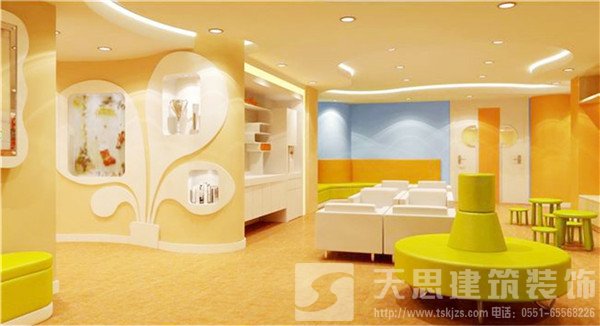 親子早教機構(gòu)在功能設(shè)計上區(qū)別于幼兒園的區(qū)域功能。因此我們在進行親子早教中心的環(huán)境設(shè)計時,不僅將裝修思路與幼兒園設(shè)計一概而論。天思裝飾指出,親子早教中心的主體人群由于年齡較小,缺乏自我行為和安全的控制能力,所以在早教中心的環(huán)境設(shè)計過程當(dāng)中,要符合兒童心理特征,能引起孩子的注意和興趣,選材要以綠色環(huán)保為主。