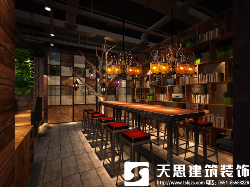 入門處,觸手可及,參差不一的木質(zhì)裝飾成就了獨(dú)特的流動(dòng)感,莞爾一笑就可見擺放一隅的書架。
