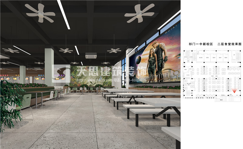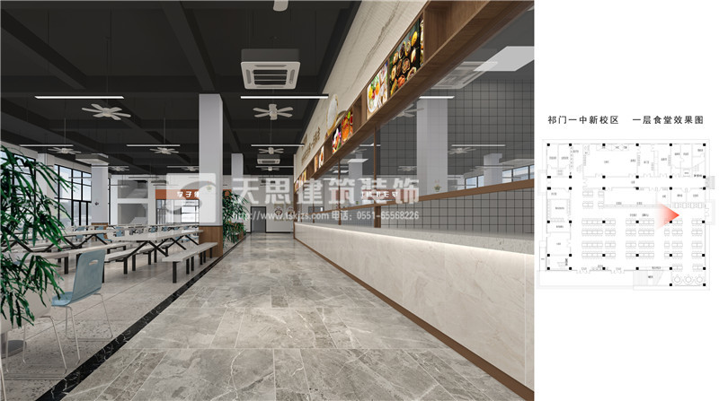 安徽天思專業(yè)專業(yè)提供餐廳設計,食堂裝修施工服務,質量有保障。以下為祁門一中食堂設計效果圖,請您欣賞。如果您有相關需求請及時與我們聯(lián)系。