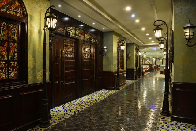 設(shè)計(jì)說(shuō)明:整個(gè)餐廳以民國(guó)時(shí)期的重慶來(lái)打造,以民國(guó)建筑和民俗風(fēng)情為藍(lán)本,以民國(guó)時(shí)期六對(duì)著名的戀人作主題,就連服務(wù)員的服裝也特別制作為民國(guó)學(xué)生裝及軍統(tǒng)軍裝。紙醉金迷,恍若隔世。