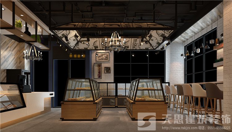 設計風格以復古的文化氣息結合現(xiàn)代的審美要求創(chuàng)造出一種具有歐洲古堡韻味、時尚個性、極具創(chuàng)意感以適應不同人群的需求及審美的設計。空間頂部設計采用裸頂噴灰漆局部吊頂?shù)氖址?,突出重點區(qū)域,節(jié)省成本。墻面采用水泥漆、文化磚等,地面采用水泥地坪漆,整個空間采用灰色調突出展柜的木紋顏色,進而突顯產品,使整個空間顯得高大上。店內以灰色調為主,采用藍綠色作為點綴,使得屋外與屋內得到了很好的延續(xù)。