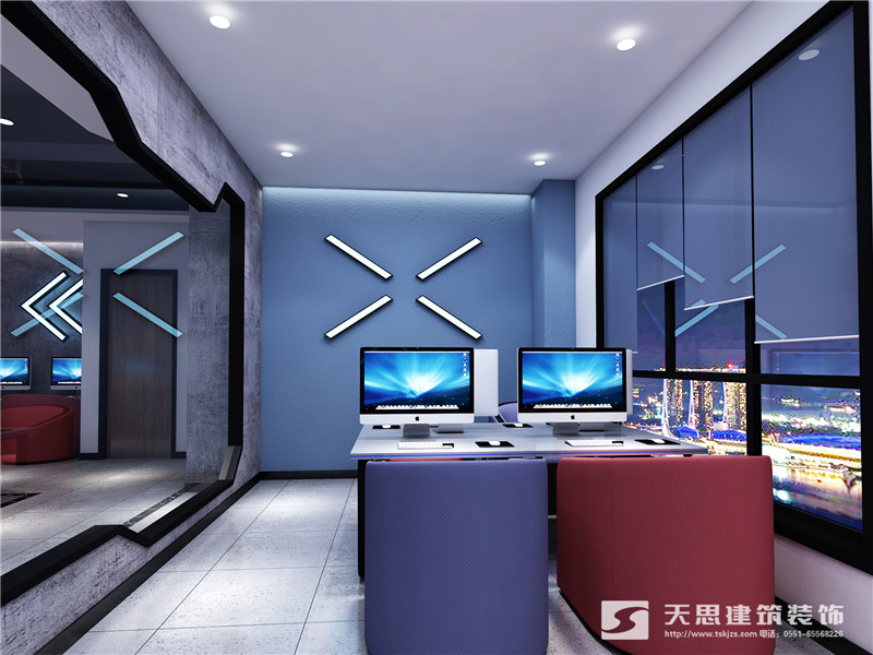 根據(jù)業(yè)主的要求,網(wǎng)咖設(shè)計(jì)的整體顏色以淺色為主,中間穿插對比強(qiáng)烈的撞色系來展現(xiàn)效果。