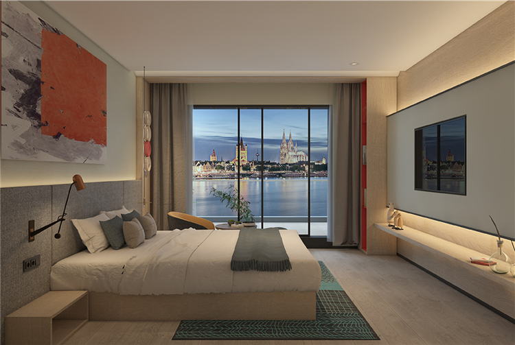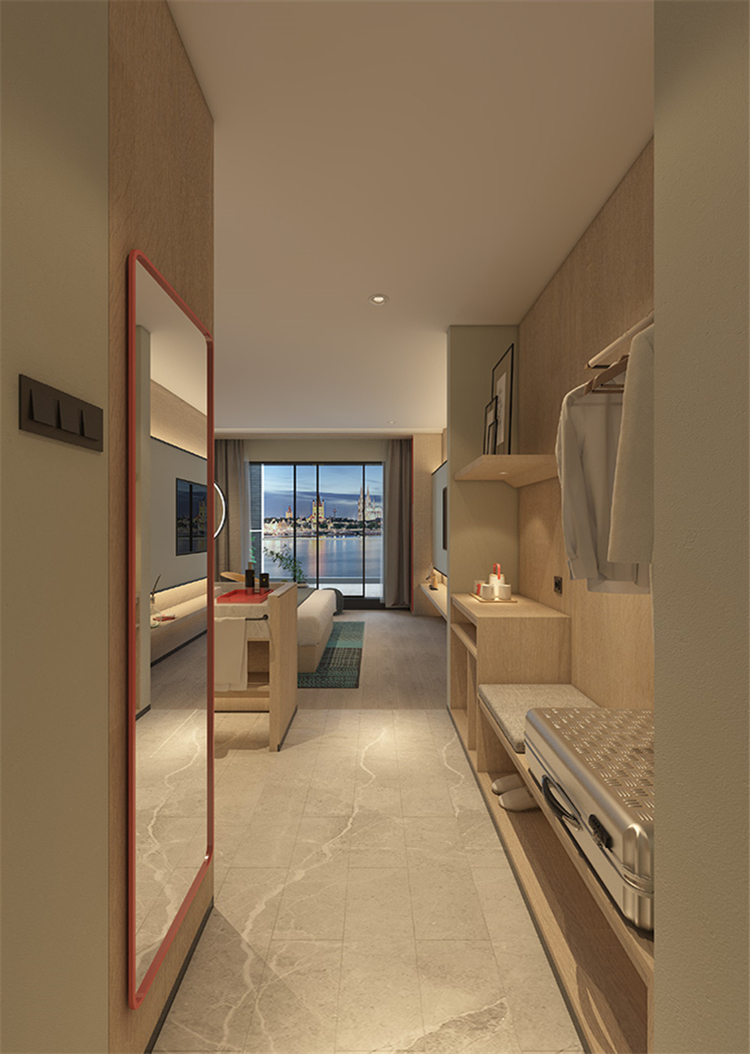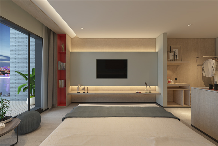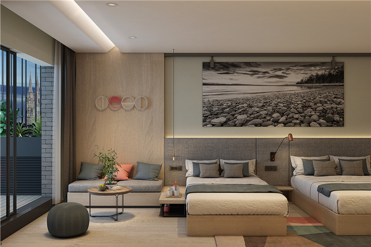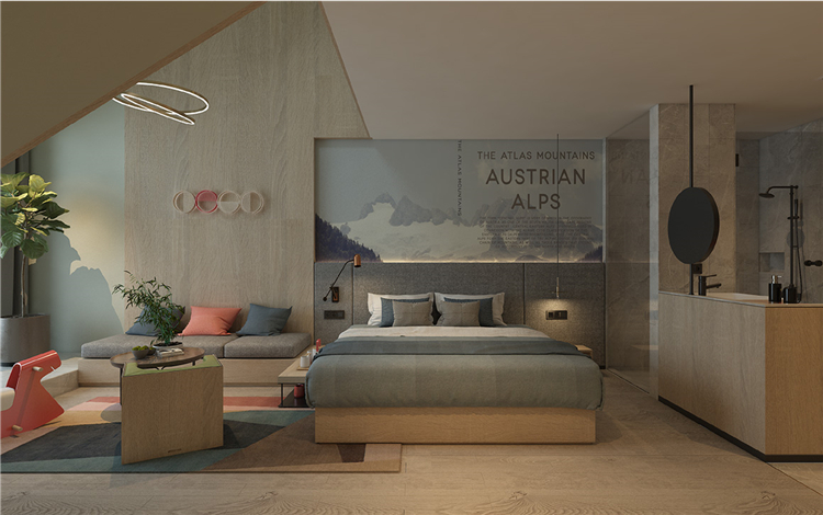 在功能的安排上人性化,為顧客帶來(lái)舒適的入住體驗(yàn)與外立面相呼應(yīng),設(shè)計(jì)師在完整的用材體系上,增加了對(duì)比性明顯的色塊,高度提升了空間的趣味性和耐看度。