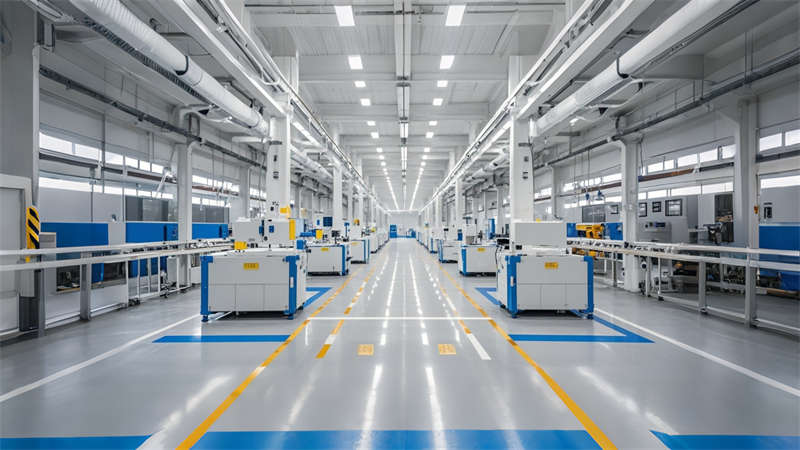 本6500㎡廠房設(shè)計(jì)采用現(xiàn)代工業(yè)風(fēng)為核心,融合功能性與科技美學(xué)??臻g規(guī)劃嚴(yán)格遵循生產(chǎn)流程,劃分生產(chǎn)、倉儲、辦公、輔助四大模塊,通過鋼架玻璃隔斷實(shí)現(xiàn)通透性與分區(qū)管理。主色調(diào)選用深灰、淺灰、企業(yè)藍(lán)三色體系,地面采用耐磨環(huán)氧地坪漆,墻面運(yùn)用金屬波紋板與混凝土質(zhì)感涂料。智能化設(shè)計(jì)貫穿全廠,集成AGV物流系統(tǒng)、環(huán)境監(jiān)測屏及LED導(dǎo)向標(biāo)識。重點(diǎn)區(qū)域如入口LOGO墻、橙色休息區(qū)等植入色彩心理學(xué)應(yīng)用,既保持工業(yè)空間理性特質(zhì),又提升員工舒適度。照明系統(tǒng)采用分級控制,生產(chǎn)區(qū)6500K高顯指LED工礦燈保障作業(yè)精度,辦公區(qū)4000K暖光營造高效氛圍。
