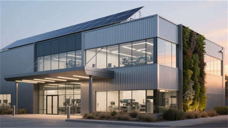 本案以“工業(yè)美學(xué)×智能效能”為核心理念,打造集精密制造與數(shù)字管理于一體的現(xiàn)代化廠房。外立面采用陽(yáng)極氧化鋁板與Low-E玻璃幕墻交錯(cuò)拼接,光伏斜頂與垂直綠化形成生態(tài)節(jié)能矩陣,呼應(yīng)合肥“科創(chuàng)之城”的定位。