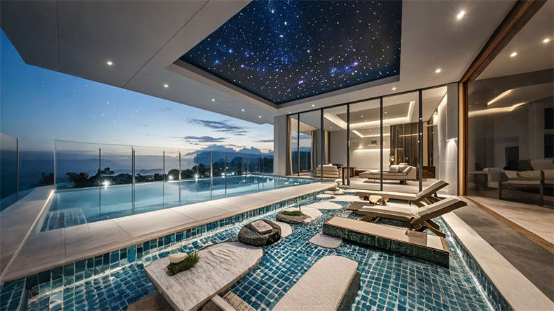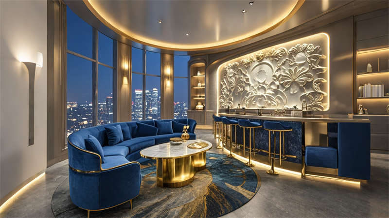 本案為6000平現(xiàn)代輕奢風(fēng)格商務(wù)酒店,以 ' 城市綠洲 ' 為設(shè)計(jì)理念,將自然元素與科技美學(xué)融合??臻g規(guī)劃采用動(dòng)靜分區(qū)原則,1-3 層為公共接待區(qū),4-8 層設(shè)置標(biāo)準(zhǔn)客房,9-10 層規(guī)劃行政專屬空間。色彩體系以香檳金、深海藍(lán)、暖灰為主調(diào),搭配天然木紋與石材肌理,營(yíng)造低調(diào)奢華的氛圍。智能系統(tǒng)貫穿全樓,包含環(huán)境光感調(diào)節(jié)、聲學(xué)優(yōu)化及空氣質(zhì)量管理。特色設(shè)計(jì)包括大堂三維立體藝術(shù)墻、客房可變光環(huán)境系統(tǒng)、頂層無(wú)邊際星空泳池,以及模塊化多功能會(huì)議系統(tǒng),充分滿足商務(wù)客群對(duì)品質(zhì)與效率的雙重需求。