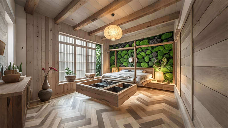本 1500 平民宿設計以 ' 在地重生 ' 為核心理念,采用現(xiàn)代自然主義手法重構傳統(tǒng)民居??臻g規(guī)劃上保留原始建筑格局,設置12間主題客房與6大公共功能區(qū)。色彩體系以米白、淺灰為基底,點綴墨綠、陶土等大地色系。材料選用夯土、回收老木、亞麻等環(huán)保材質,搭配智能化隱蔽工程。