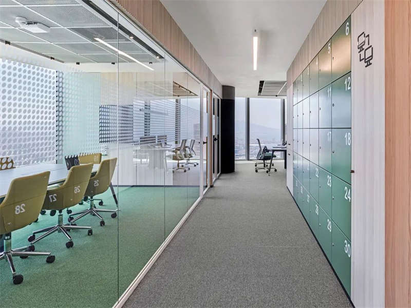 設(shè)計(jì)師在工作區(qū)設(shè)計(jì)了部分金屬網(wǎng)天花裝飾,以簡潔的元素打破了平面吊頂?shù)膯我恍?。同時(shí)豎向垂直線性裝飾即有助于整體的簡約一致性,又豐富了空間視覺,以微妙的設(shè)計(jì)語言構(gòu)筑一個(gè)精致優(yōu)雅、且時(shí)尚活力的工作場所。