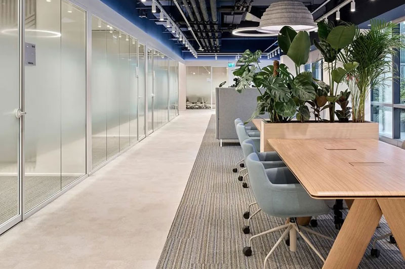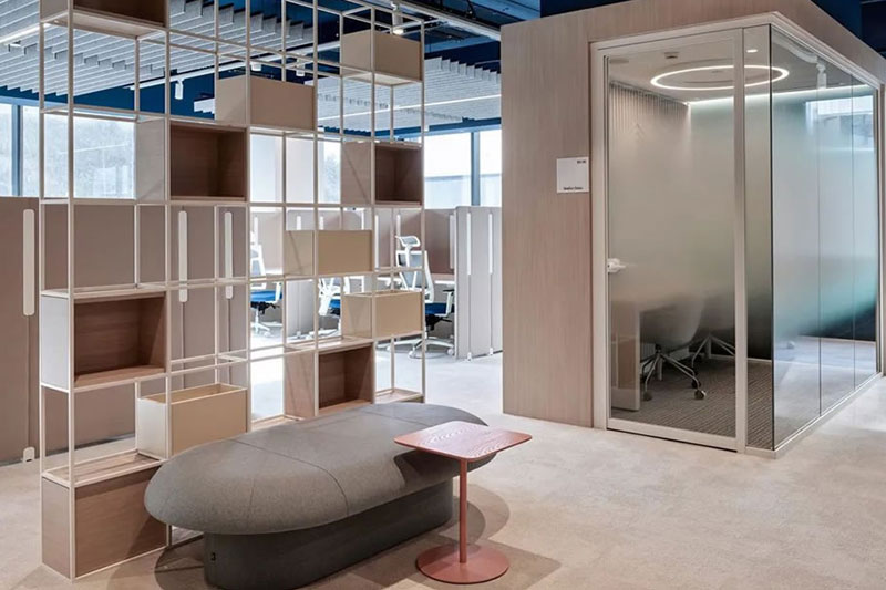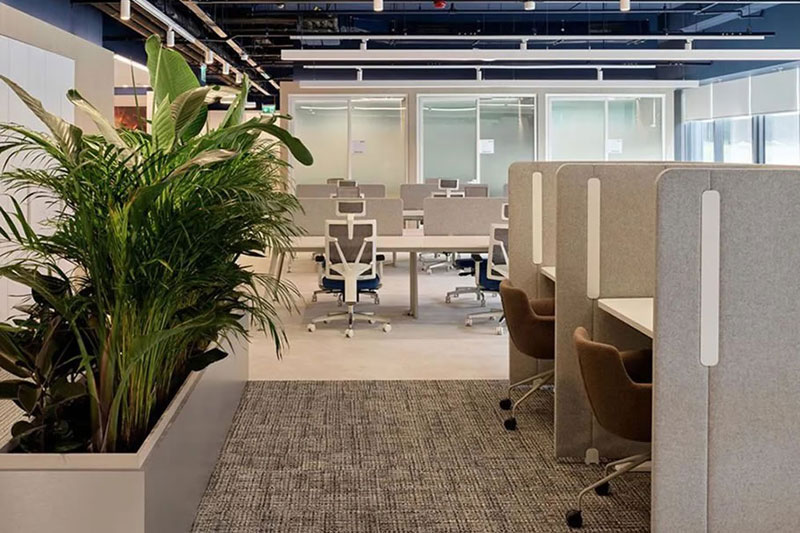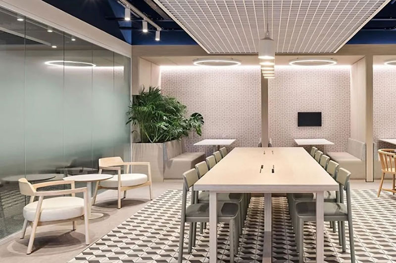 開放協(xié)作、動靜相容、靈活多元(寧靜的工作區(qū)、舒適的休閑區(qū)、開敞多元的社交區(qū)和協(xié)作區(qū)),建立在ABW基礎上的超強適應性空間規(guī)劃支持人們多樣化的工作需求。簡約溫馨的配色,加以韻律感的元素重復應用,以及隨處可見的大量綠色植物,讓整個空間在恬靜溫婉中又洋溢著靈動的韻致。