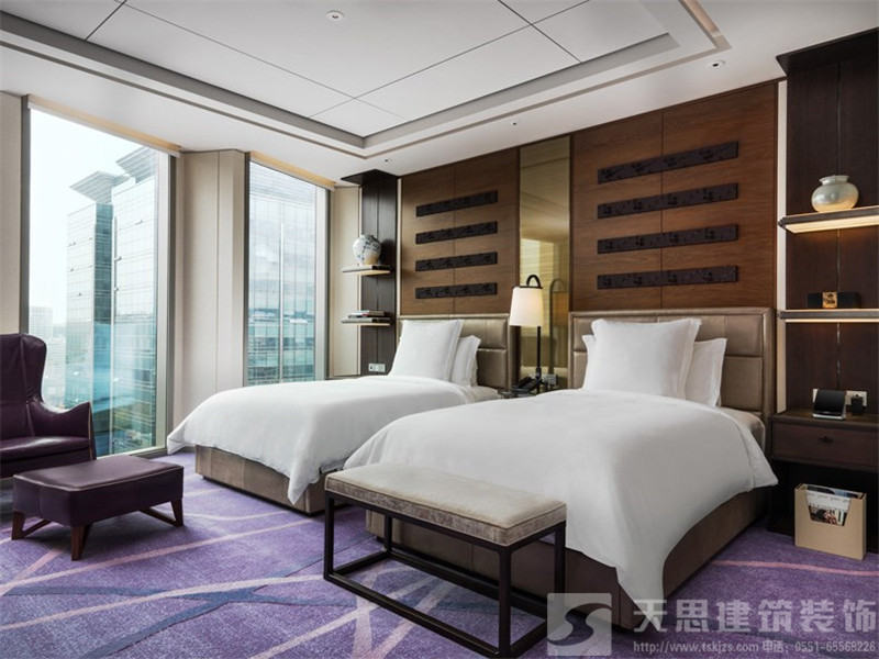 配套設(shè)施:客房的配電設(shè)計(jì)要細(xì)致周到,方便使用.配電箱通常結(jié)合空調(diào)檢修孔人設(shè)計(jì)在吊頂里.衣櫥的深度要大于0.6米,總寬度要大于1米.此外還要有存放備品的地方.壁櫥內(nèi)應(yīng)有良好的照明設(shè)計(jì).保險(xiǎn)柜可設(shè)在衣櫥或電視柜下面.寬帶網(wǎng)插座通常結(jié)合手機(jī)充電電源設(shè)置在化妝臺(tái)抽屜里.套間設(shè)計(jì):套間常設(shè)在走廊的端部或建筑的轉(zhuǎn)角處(如四季大酒店).在套間的起居室和臥室之間設(shè)一個(gè)帶門的小過廳,這樣可以在必要時(shí)把每間房分租出去.每間客房最好有獨(dú)立的衛(wèi)生間,以便單獨(dú)出租時(shí)使用.