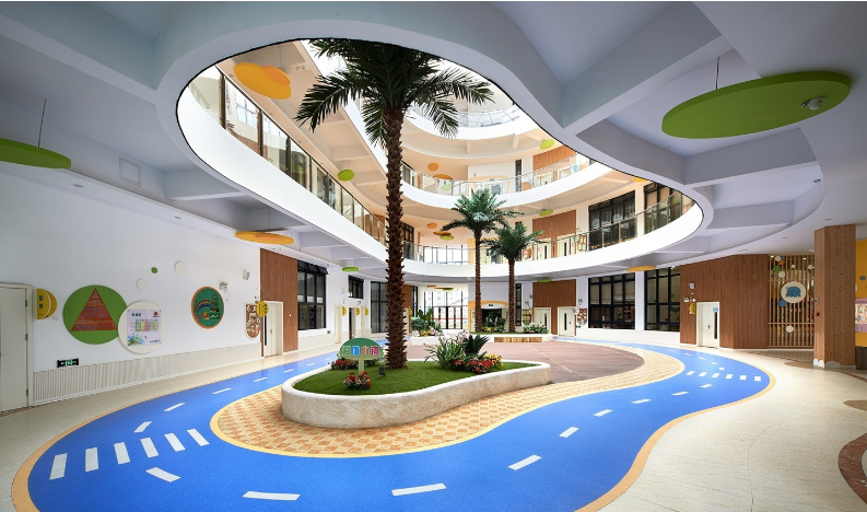 今天跟大家分享的是一所樓面積為9000多平方的幼兒園,充足的建筑環(huán)境為兒童提供豐富的活動空間.本套設(shè)計,設(shè)計師從"生活化教育"理念出發(fā),在滿足班級活動室空間需求的前提下,充分利用建筑資源條件,將空間規(guī)劃重組.配套設(shè)計有仿成人社會的小小商業(yè)城、建筑中庭的中央公園、環(huán)繞公園的街道馬路、多功能美食坊、復(fù)式結(jié)構(gòu)的圖書館、美術(shù)專項室、科學(xué)發(fā)現(xiàn)館、淘氣堡游樂城以及音體活動室等空間.構(gòu)建小小社會,解放孩子的頭腦、雙手、腳、空間、時間,使他們充分得到自由的生活,從自由的生活中得到真正的教育.