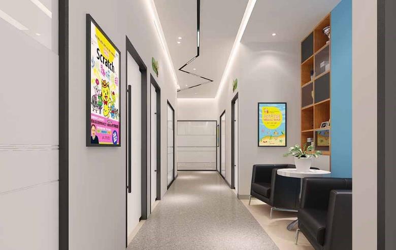 在保證有足夠的教學空間的同時,設計需要能承擔小型展覽,講座,及洽談等候等空間功能。最大化的利用空間,確保每個教室都能有充足的自然光線,并將機構形象色——綠色巧妙的融合到空間設計中。公共空間的沉浸式設計,符合整個機構的定位,增強了人與空間的互動,形成更緊密的心理聯系。