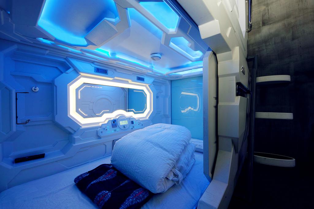 旅舍的每間膠囊客房均需要鑰匙卡。床上配有閱讀燈、保險(xiǎn)箱和液晶電視。每間客房均配有自動(dòng)通風(fēng)系統(tǒng)。共用浴室提供淋浴和免費(fèi)洗浴用品。
