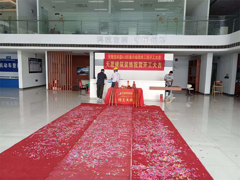 隨著禮炮一聲巨響,金錘重重砸下,在一片喜氣洋洋的氛圍中,安徽寶利盈4s店形象升級裝修工程正式開工啦,讓我們在這里道一聲:“開工大吉”!感謝業(yè)主選擇我們安徽天思裝飾為您服務(wù),我們必將不負(fù)所托,交付完美項目。如果有裝修上的需求,請聯(lián)系我們安徽天思裝飾,我們公司的使命是“實現(xiàn)顧客的夢想”!