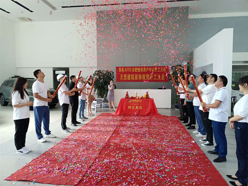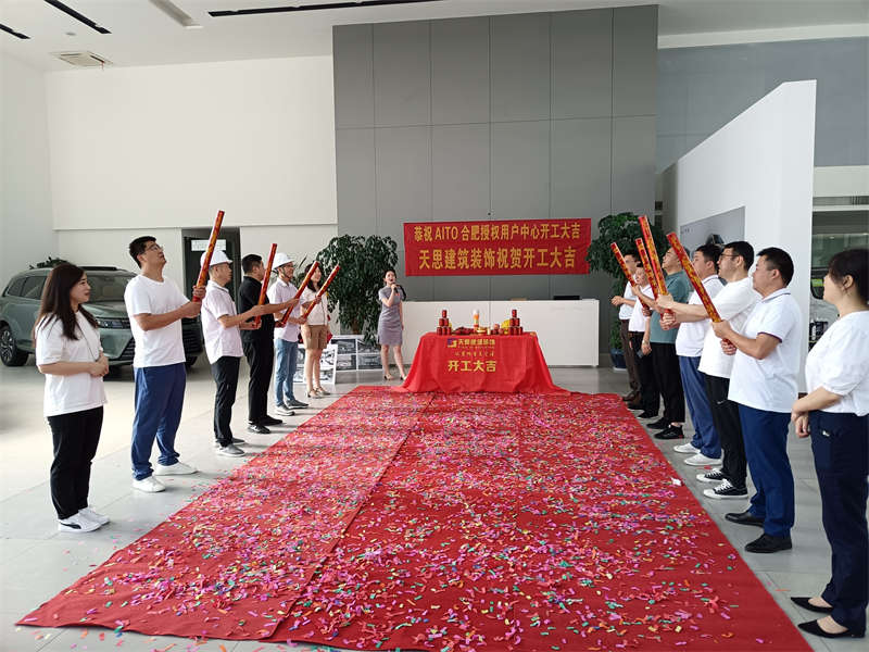 2022年8月5日,我們又迎來了新項目的開工,在這里安徽天思裝飾全體員工恭賀AITO合肥授權(quán)用戶體驗中心裝修工程開工大吉!開工儀式于項目現(xiàn)場隆重舉行?,F(xiàn)場禮花飛舞,開工錘聲音響徹工地每一個角落,讓我們再一次恭祝AITO合肥授權(quán)用戶體驗中心開工大吉!