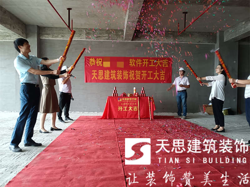天思建筑裝飾恭祝**軟件公司2000平辦公室裝修工程開工大吉