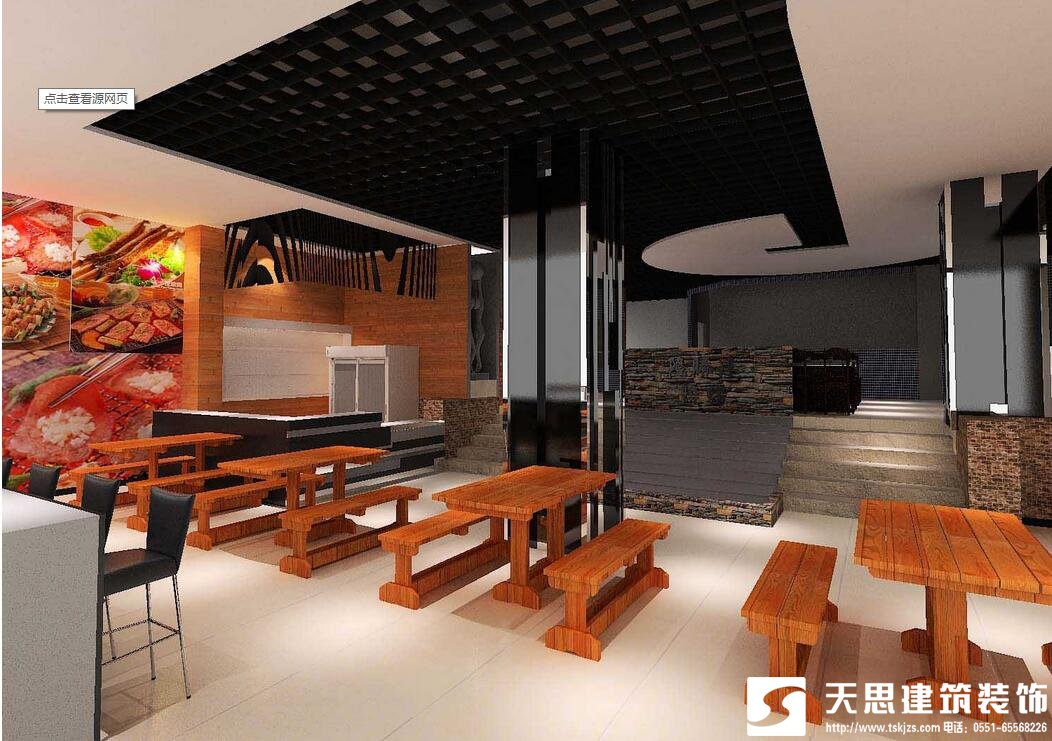 1、燒烤店裝潢設(shè)計(jì)桌椅的配置:桌椅的選擇簡單就好,但是椅子再怎么簡單都必須要有靠背,這個(gè)非常的有必要,要不客人會(huì)很累,而且稍微不穩(wěn)當(dāng)就會(huì)發(fā)生仰面朝天 的事情,最主要的還是一個(gè)舒適度。桌子選擇一些木質(zhì)的,感覺看起來比較厚重的款式,桌面上鋪上厚玻璃最好,這樣在打掃時(shí)會(huì)方便很多而且看起來桌面透亮,美 觀不少,不然時(shí)間長了任何桌子表面都會(huì)出現(xiàn)褪色的情況。