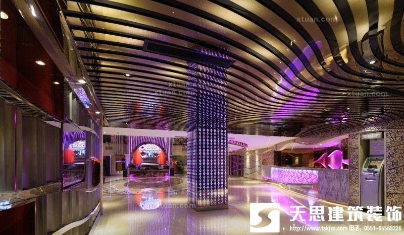 大廳。KTV大廳應(yīng)明亮寬敞。材質(zhì)上,要選用耐臟、易清潔的飾面為材料,地面與墻面采用具有連續(xù)性的圖案和花色,以加強(qiáng)空間立體感,同時(shí),還要注意減少噪音的影響。