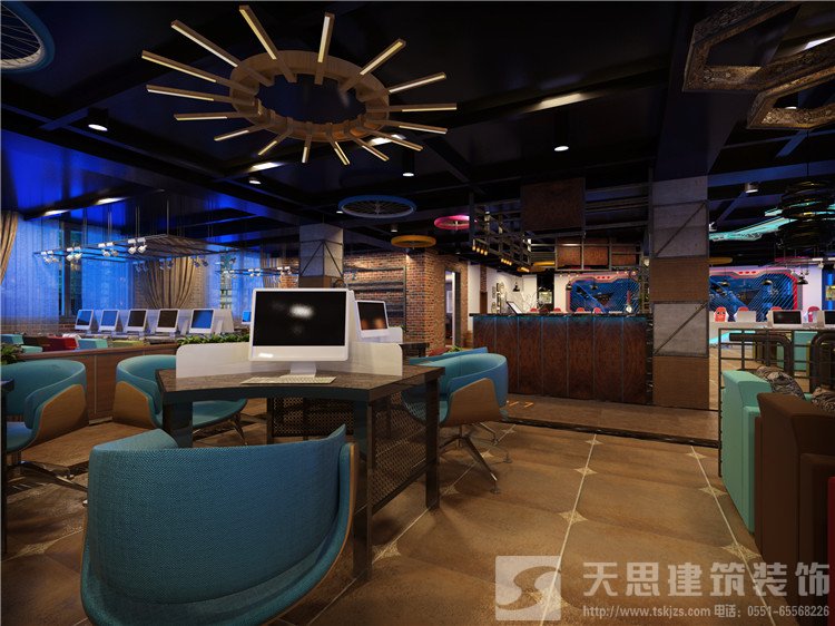 3、網(wǎng)咖的設(shè)計(jì)應(yīng)該涉及到每一個(gè)點(diǎn)、線、面,保證每個(gè)地方都沒有疏漏,還要突出與眾不同的個(gè)性化特點(diǎn)。比如墻面可以做大型噴畫和網(wǎng)咖LOGO,或噴涂成符合網(wǎng)咖裝飾格調(diào)的顏色,保證網(wǎng)咖整體視覺的大氣和舒適。
