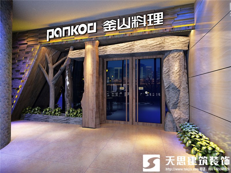 餐廳設(shè)計從自然界中提煉元素并進(jìn)行分解和重組,運用此案帶的語言來表現(xiàn),將傳統(tǒng)和現(xiàn)代融合在同一空間內(nèi),創(chuàng)造出一個溫暖而不失私密、神秘的空間。“質(zhì)樸、自然”,方案中運用原木、石、藤蔓和混凝土等生態(tài)材料,以及絲綢、染織布料、光滑的黑色皮革等現(xiàn)代材料,為客人用餐其中感受自然的氣息,也保留了現(xiàn)代設(shè)計感。