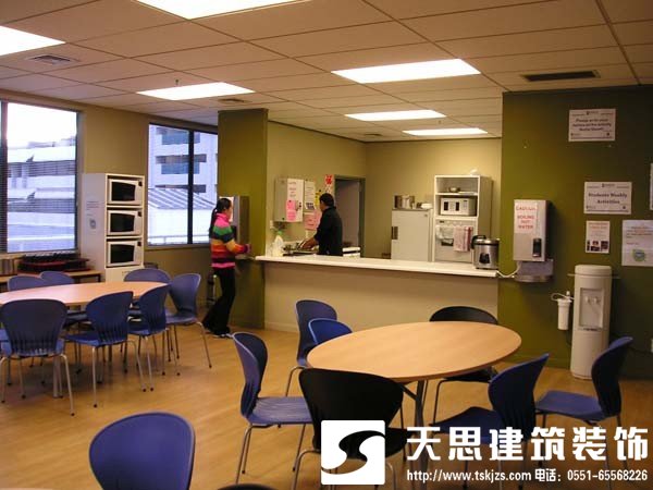 2、學(xué)校餐廳裝修設(shè)計(jì)空間--最好的學(xué)校餐廳裝修設(shè)計(jì)最注重的就是內(nèi)部空間的布置,因?yàn)椴贾玫暮脡暮侠砼c否將直接關(guān)系到服務(wù)的效率;一般情況下學(xué)校餐廳的大部分桌椅都是靠墻排列的服務(wù)臺(tái)則以島式配置與房子的中央。這種方式能夠合理的利用空間,使我們的利益最大化。