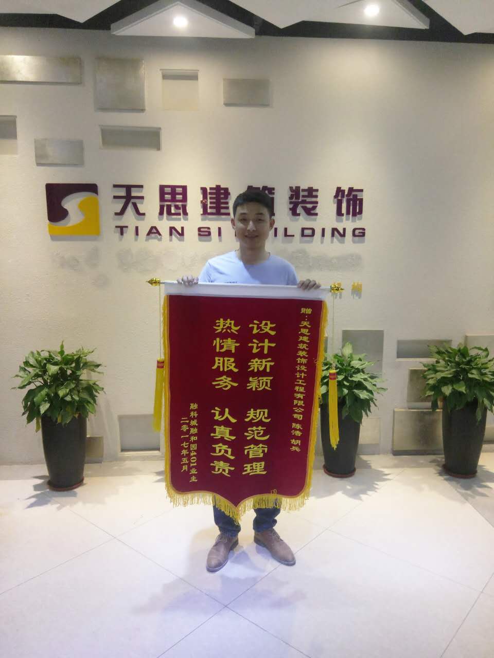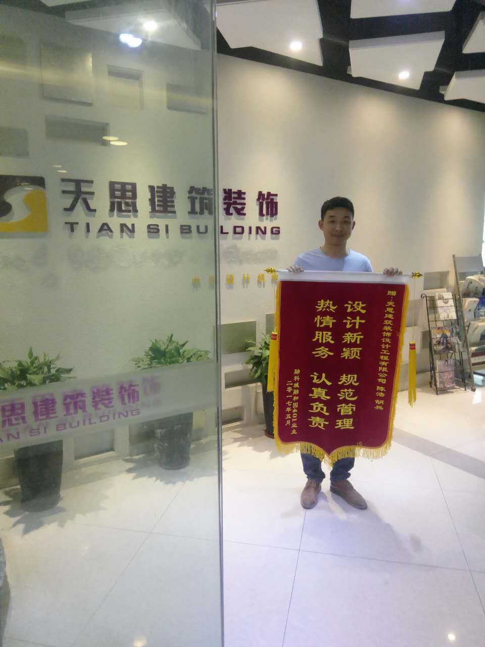 “服務(wù)熱情素質(zhì)好,辦事認(rèn)真效率高”是業(yè)主對天思裝飾的肯定。一直以來,天思裝飾的全體員工都盡力做好每一家的裝修工程,同時(shí),業(yè)主為天思裝飾送來錦旗,也讓我們很是感動。