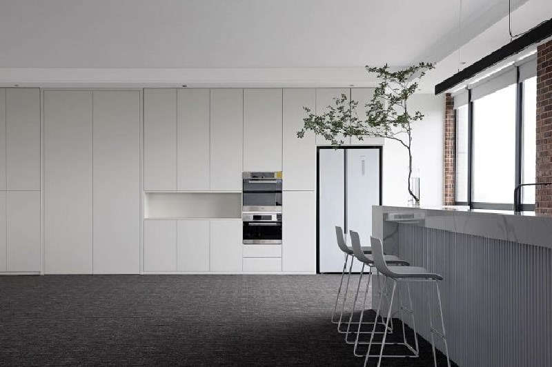 不同于以往辦公一味追求的對稱藝術(shù),經(jīng)由橫平豎直的線條勾勒,本案布局在硬朗的輪廓下規(guī)整有序,又與弧形彎道相輔相成,運用圓角規(guī)避各處尖銳轉(zhuǎn)折,柔和視覺。