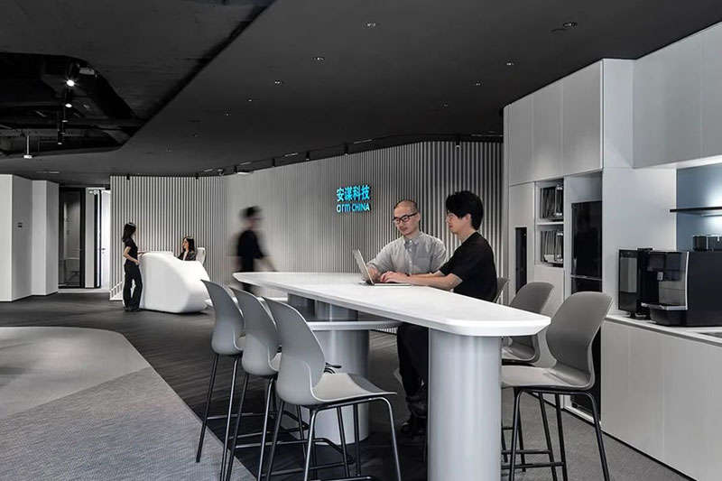 設(shè)計過程中也不乏挑戰(zhàn):如何在空間設(shè)計中顯示出Arm China 特有DNA以及未來辦公的前瞻性?一工團隊為此做了充分調(diào)研,成為智能計算生態(tài)的領(lǐng)航者,這是Arm的一個企業(yè)愿景,我們同時理解了Arm最新的VI轉(zhuǎn)型設(shè)計。設(shè)計師把此次項目當(dāng)作一顆未來的種子,以點破面,將Arm的員工當(dāng)作未來的種子和探索者。在空間中用動線、機理和光和設(shè)計手法引導(dǎo)來訪者在新的辦公空間朝向往的方向生長。