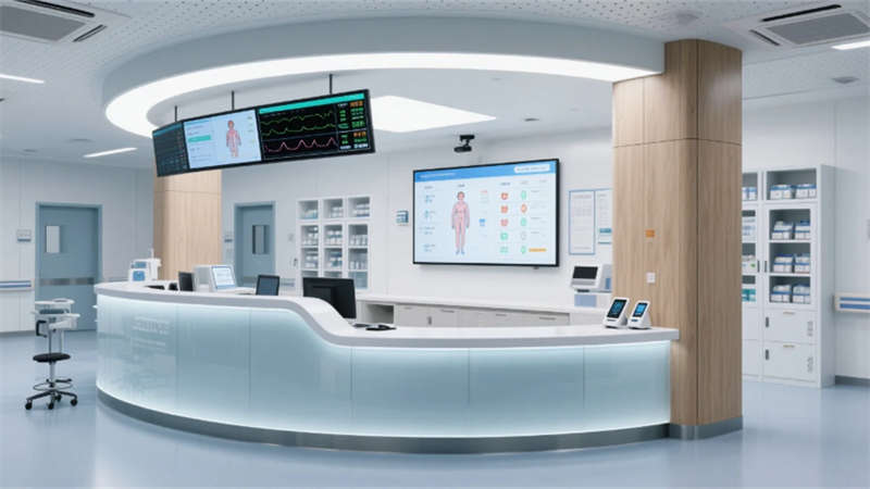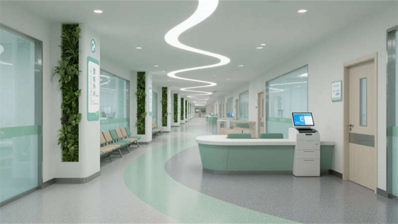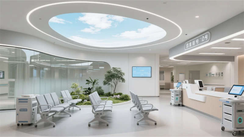 智慧系統(tǒng)隱形滲透每個角落:候診區(qū)的生態(tài)墻內嵌電子叫號屏,醫(yī)療街導航立柱實時更新就診信息,病房床頭屏集成環(huán)境控制與醫(yī)療呼叫功能。特別設計的抗菌材質與無縫工藝,在營造溫暖氛圍的同時嚴守院感防線。